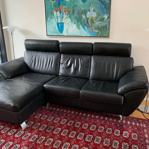 Lædersofa med chaiselong