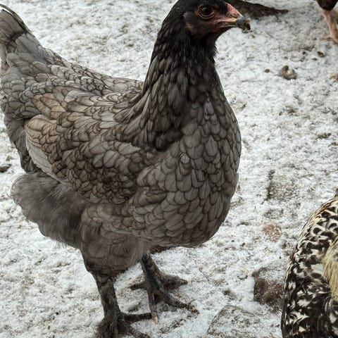 En stamme usædvanlig flotte høns fra sidste sommer. Kryds af olivenlæggere og Dorking, lægger fine grønne æg.