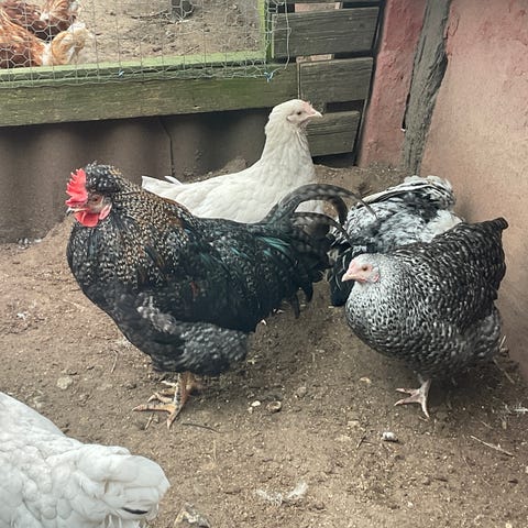 Hane og 4 høner for 950kr