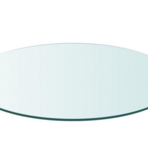 Rundt glasbord bordplade i klart glas. Anvendes som bordplade til rundt bord. Diameter og tykkelse ikke oplyst.