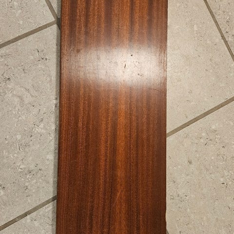 Fin hylde i teak - brugt men ok, med ophæng. ca 60 cm lang 20 cm dyb og ca 1,5 cm høj. Ophæng m/hylde højde 19,5 cm