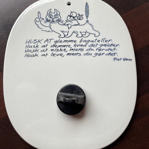 Royal Copenhagen Piet Hein Fajance vægplade med tekst og illustration
