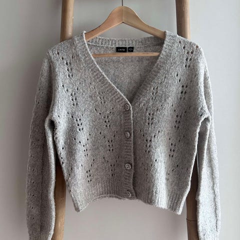 Strikket uldcardigan med farveskift fra LMTD (str. 152)