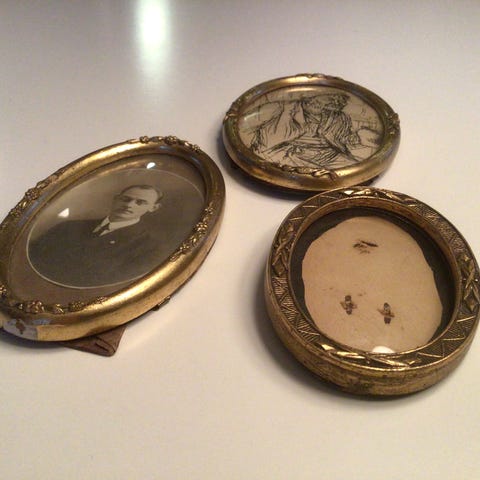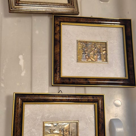 Antikke billeder med religiøse motiver. Formet som medaljoner (str. 8 cm)