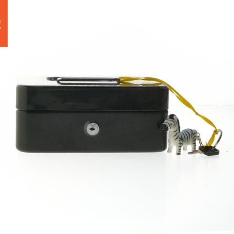 Hvid vintage pengekasse med lås (str. 6x15x11 cm)