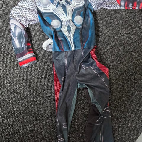 Captain America kostume i blå farve. Kostumet inkluderer heldragt og maske.