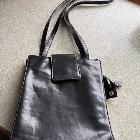 Denne skuldertaske er fremstillet af glat læder og har en klassisk flap som lukning. Tasken har en justerbar skulderrem, der gør den nem at bære, og tilbyder god plads til opbevaring af nødvendigheder. Den måler 20x22 cm og har en kompakt, praktisk størrelse perfekt til både hverdagsbrug og mere formelle lejligheder.
