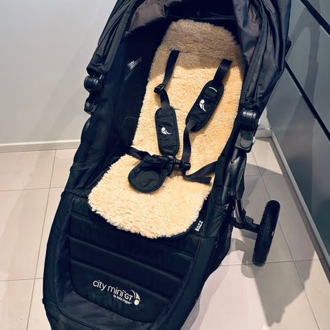Pusletaske, uoriginalt myggenet og ekstra uoriginalt regnslag medfølger også- hvis dettte ønskes. Er gratis tilbehør.