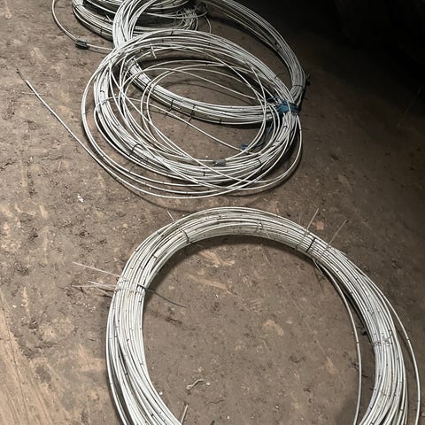 Nr. 3: Transport bandager, røde, med velcro lukning. Stretch polyester. 10x325 cm 30,- kr.