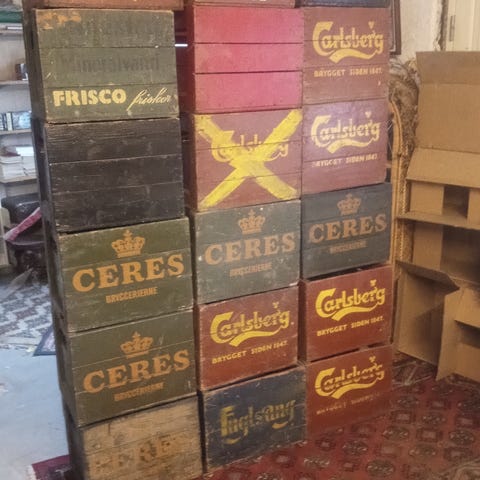 Gammel ølkasse med patentflasker. Skal afhentes ved Randers
