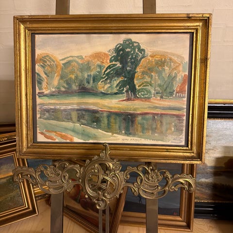 Et dekorativt og stemningsfuldt dansk maleri, der passer perfekt til både klassisk og moderne indretning — ideelt til stue, sommerhus eller som del af en kunstsamling.