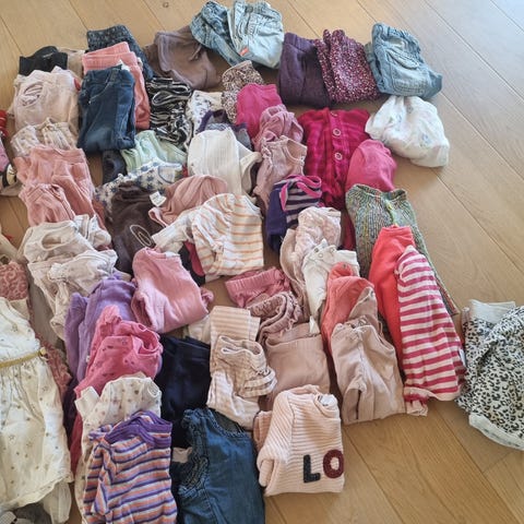 Praktisk tøjpakke i størrelse 74, perfekt til piger eller kønsneutralt.