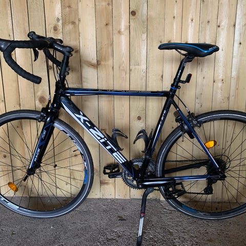Nishiki Finisher racer med 28"/700c hjulstørrelse og M stelstørrelse. Gearet skal justeres på store klinge og bremseklodserne skal snart skiftes. Ellers superfin cykel.
