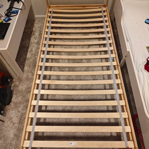 Sengen er brugt, men i pæn stand uden skader. Står skilt ad, men er utroligt hurtig og nem at samle.