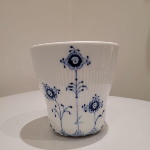 Royal Copenhagen Hvid Elememts termokopper (35 cl). Den ene kop har en overfladisk revne indvendig, som er uden betydning.