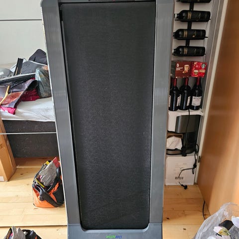 Har dette gåbånd jeg ikke får brugt alligevel det har været prøvet 1 gang også stået pakket væk. Der medfølger smøring og fjernbetjening til båndet så man kan styre den plus manual