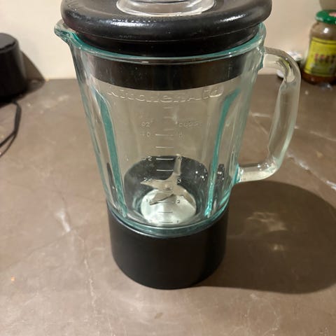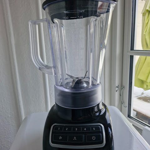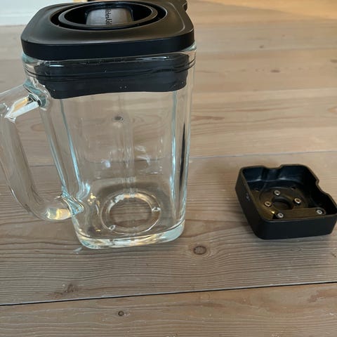 Flot rød blender med stor glaskande fra KitchenAid, klar til både smoothie, supper mm.