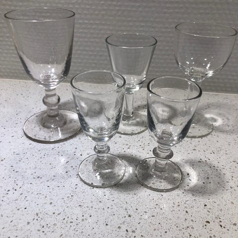 Glas til snaps / portvin. 10 stk i alt. H: 9.5 cm på 5 stk portvinsglas og H: 8 cm på 5 stk. snapseglas. Rigtig god kvalitet. Alle 10 stk. sælges for kun 100 kr. Se også, hvad jeg ellers har til salg.