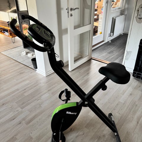 Kilberry Fitness motionscykel med digitalt display, justerbart sæde og håndtag. Den er foldbar, så den er praktisk og kan let sættes væk.