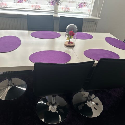 Sælger dette komplette spisebords sæt. Bordet er meget robust og tåler lidt af hvert. Stolene er af samme støbning og man