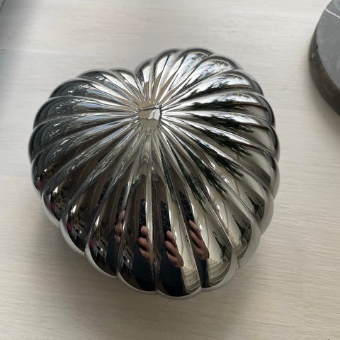 Georg Jensen skål i sølv. Skålen har et rundt design med en blank, reflekterende overflade. Velegnet til opbevaring af smykker eller småting.