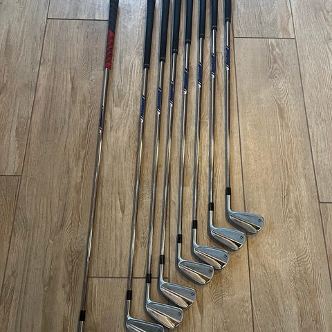 Titleist combo sæt 4-5 er t200 6-7-8-9-p er t100 Project X stål skafter og røde/sorte grip kun spillet den her sæson super lækre p skal bare lige have nyt lim men ingen skader på noget