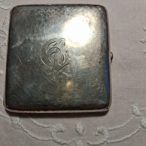 Ældre og smukt japansk cigaret etui sælges. Etuiet fremstår med brugsspor i form af små buler og ridser.