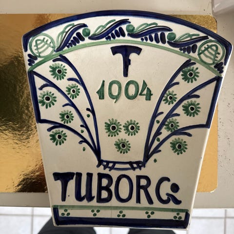 Carlsberg 1908 dekorativ bryggeri platte Aluminia, med blå og hvide farver. Carlsberg 1908'. Velegnet til ophæng