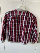 Rød og sort ternet trøje/jakke fra Molo, str. 140, Super trøje, der er god til børnene, det hurtigt løber ud uden overtøj, de lidt lunere dage??