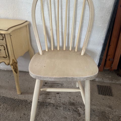 Stolene har et klassisk design og ryglæn med udskæringer. Velegnet til spisestue eller køkken.