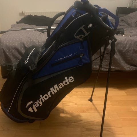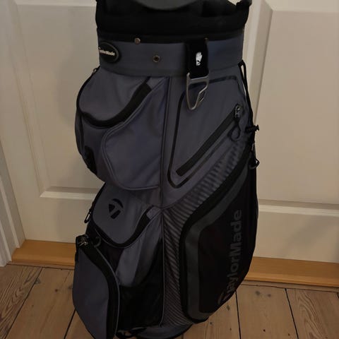 TaylorMade Stealth Tour Stand Bag golfbag i sort og rød farve. Golfbagen har støtteben, flere lommer til opbevaring og er designet til at bære golfudstyr. Passer til golfspillere, der ønsker en bærevenlig og funktionel golfbag.