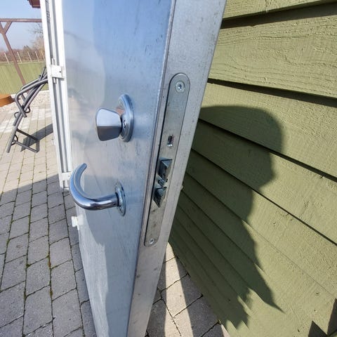 3xDørblad: Mål b x h 990 x 2100 mm. Forzinket stål, tykkelse 62 mm, pulverlakeret RAL 7016 antracitgrå