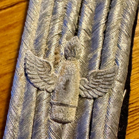 bemærk : de to trykknapper er ikke helt i orden. Det højre sidder løst i stoffet og det venstre låser ikke indvendigt.