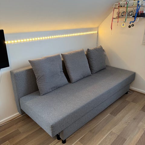 Meget nem at forvandle fra sofa til seng, og med opbevaring under.