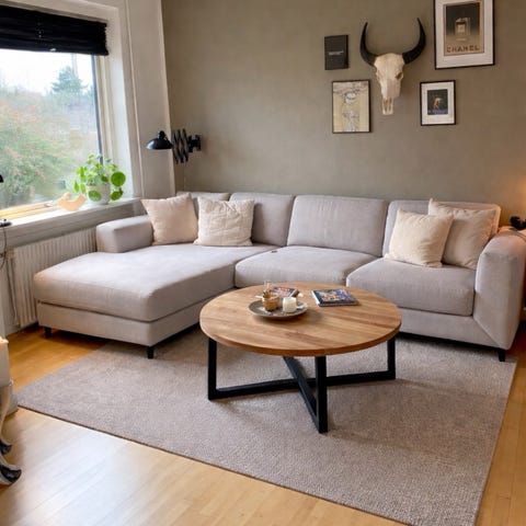 Sofaen består af to moduler og er ikke vanvittig tung. God stand med få, mindre pletter, se billeder ( kan vaskes).