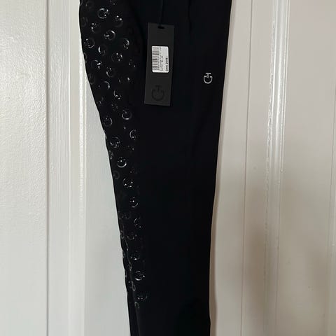 Bukserne har fuld silikonegrip Materialet er elastisk og designet til komfort og bevægelsesfrihed under ridning. Bukserne har lynlås og knaplukning foran samt stretchpaneler ved anklerne.