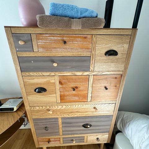 Tilbehør, fyrretræ, b: 18 d: 18 h: 31, Lille sjovt dekorativt træskab.
