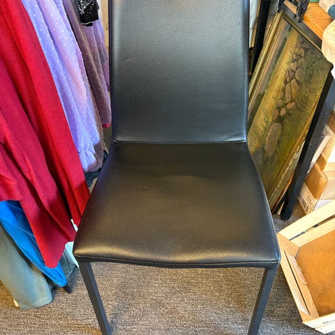 4 stk spisebordsstole i sort træ og med metalben. De er lidt ridsede i malingen nogle steder og der er lidt ridser i benene. Men er ellers i god stand. Sælges samlet for 300kr. Kun til afhentning eller levering på lolland mod betaling