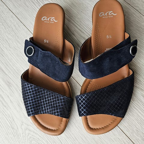 Damesandaler fra ara brugt 1 gang. Forkert størrelse. Komfortable sandaler med luftpolster og samtidig med flot blomst som pynt for et stilet og feminint udtryk.