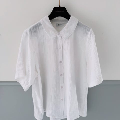 Med fine detaljer ved ærme, knapper i nakke og runde skæringer forneden.