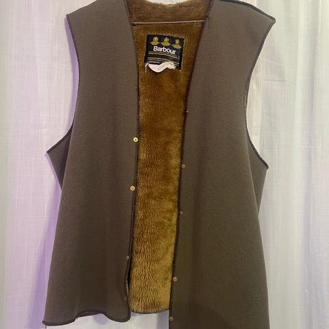 Vest, str. M, BARBOUR, Som ny, brugt ved nyligt enkelte lejligheder, den helt klassiske grønne Barbour vest med gode lommer.