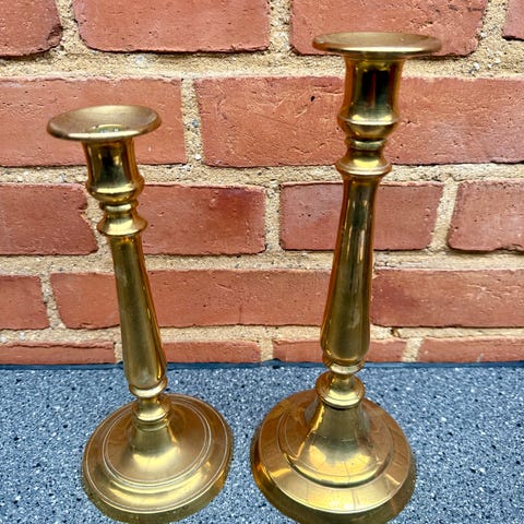 2stk lys stager i messing . Har fået lettere buler i fod/ bund .