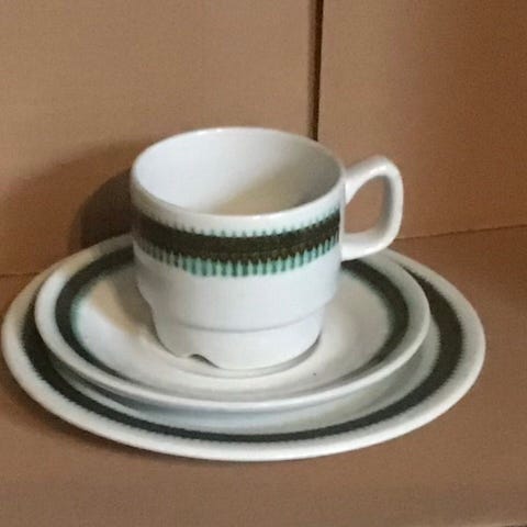 Korpulent kaffestel i porcelæn bestående af kopper, underkopper. Stellet har et dekorativt mønster i varme farver solsikke og er velegnet til servering af kaffe eller te. Materialet er porcelæn, og stellet kan anvendes til dagligt brug eller ved særlige lejligheder.