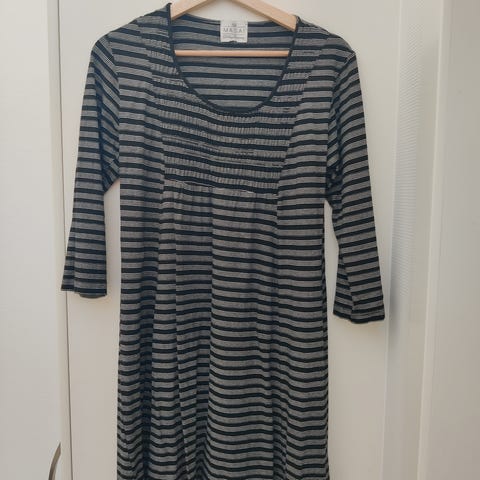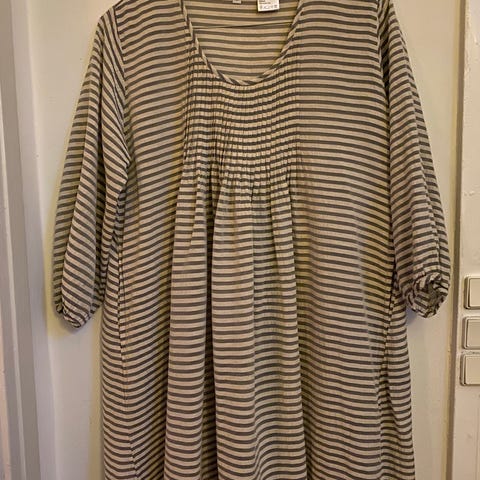 Masai kjole / tunikai størrelse M til kvinder. Kjolen er beige og lavet af 80 % bomuld og 15 polyester og 5 elastan.