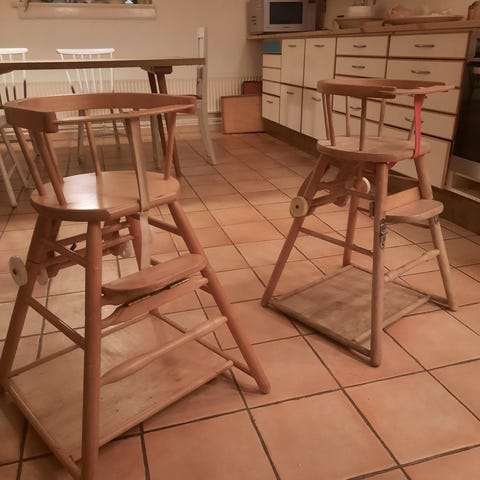 Praktisk højstol i sort farve. Højstolen er designet til børn og kan justeres i højde og fodstøtte for at tilpasse sig barnets vækst. Den er nem at indstille da den har klik-system. Jeg tror det er en Brio men mærket står ikke noget sted .