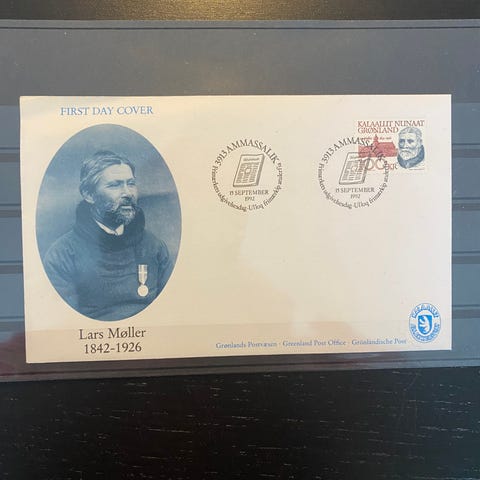 Meget sjælden kuvert med 25 kr. Moskusokse stemplet på udgivelsesdagen den 27. november 1969 sælges meget billigt. Der blev ikke lavet en officiel førstedagskuvert af dette frimærke.