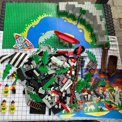 Flere ældre Lego-sæt sælges. De står samlet, men da det er mange år siden, de blev bygget, kan der forekomme manglende dele. Enkelte klodser kan være misfarvede.
