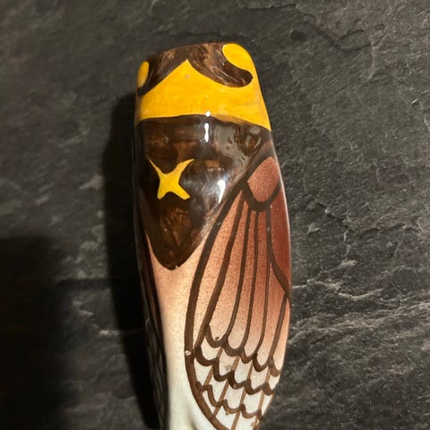 Meget sjælden figur i form af en stor spyflue med krop af tin og ben af messing. Vingerne kan åbnes og her finder du et rum til opbevaring af små ting som smykker og ringe. Kan også bruges til cigaretter eller som askebæger.