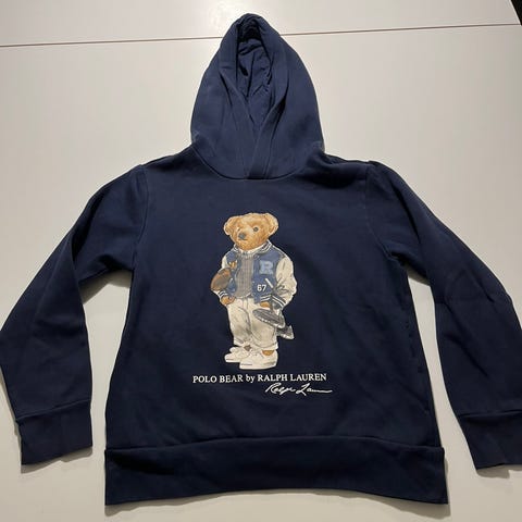 Polo Ralph Lauren hættetrøje til børn i størrelse 128. Trøjen er blå og lavet af bomuld. Designet er unisex og egnet til både drenge og piger.