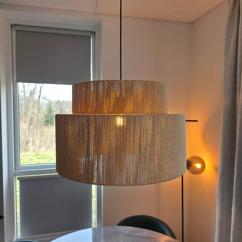 Det er den lange model på 135 cm. Monteret med et smart LED-rør, så lyset kan dæmpes eller skifte nuance via app.